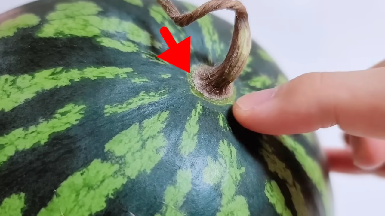 두 번째로, 끝 부분이 살짝 들어간 수박을 선택하세요. 수박뿐만 아니라 모든 과일은 하루 온도 차이가 커야 더 달고 맛있게 자랍니다. 일교차가 큰 지역에서 자란 수박은 끝 부분이 살짝 들어가는 모양을 띄는데, 이를 확인해 보고 선택하는 것이 좋습니다.